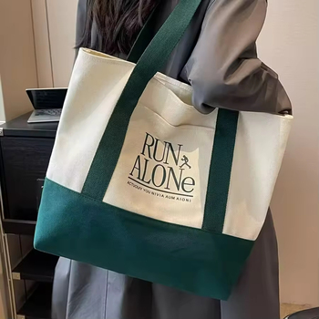 حقيبة حمل قماشية كبيرة مخصصة مع جيب وسحاب بطبعة شعار خاص