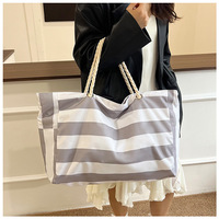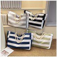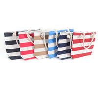 Grote Capaciteit Streep Touw Katoenen Canvas Draagtas Contrasterende Kleuren Katoenen Touw Handvat Waterdichte Boodschappentas Met Aangepaste Logo